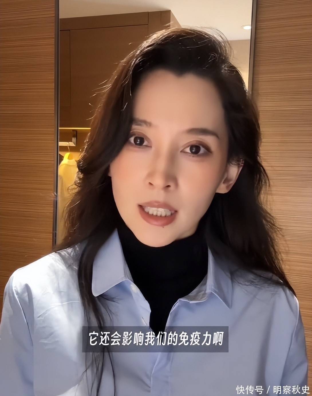 视频里,她穿着一件看着就挺舒服的蓝衬衣,化了点淡妆,想营造那种云淡风轻的感觉。